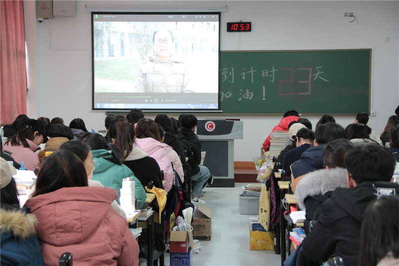 慰问开始前,毕业班辅导员播放了由学院老师、宿管阿姨及低年级学生代表精心准备的考研祝福视频。随后,龙涌澜代表学院向正在准备考研的学子表达了鼓励和期望,他鼓励大家在备考的最后阶段要全身心投入复习备考,坚持到底,全力以赴才能取得最后的胜利。范俊杰也表示了对考研学生的关心和鼓励,她表示:“每一位同学既然选择了这条路,便要勇敢的坚持下去,一切都会是最好的结果。”最后,学院老师们将考研慰问券的发放和领取事宜告知了在场学生。