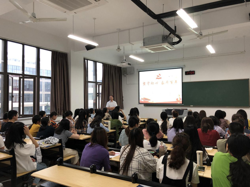 为迎接七一建党节的到来,6月20日晚,商学院、经济学院在西太湖校区立德楼X219教室开展了院关工委“一院一品”之“讲红色故事,忆红色经典,传红色基因”系列活动第一讲,商学院关工委丁恒龙老师以“坚守初心,奋斗百年”为主题带领同学们深入学习了解了党的发展历程和党的十九大精神,商学院、经济学院全体学生党员参加了活动。