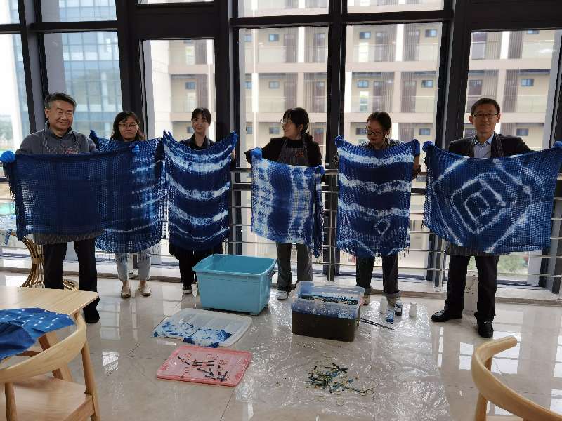 为给老师留足充足的活动时间,经济学院分工会于10月28日、31日连续举行了两场主题活动。活动在金融18级在校生马郑凌的创业公司常州艺染生物科技公司的协助下顺利举行。参加活动的老师现场聆听了传统扎染技艺,并在扎染老师的指导下进行创作。扎染是中国民间传统而独特的染色工艺,从扎结到染色都极富创造性,各位老师发挥充分的想象力,从绑皮筋开始,尝试用捆扎、簇扎、板夹的扎染方法,对扎染物进行变化多样的折叠和扎线,并将扎好材料投入到染料盆内充分上色,最后的成色都在解扎风干后靓丽呈现,最终,大家完成了一条条图案极具特色的扎染围巾和手帕。