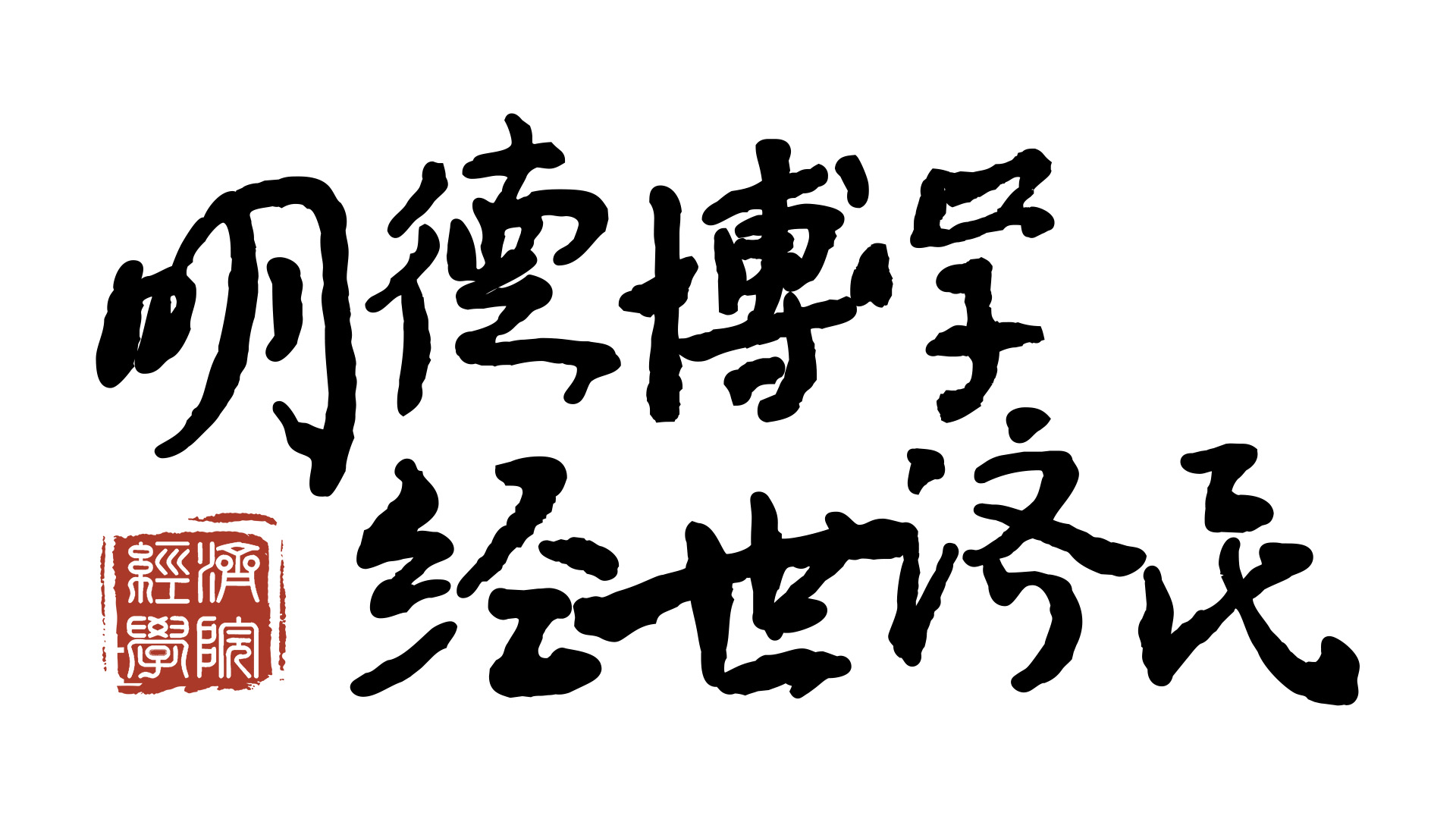 院训“明德博学、经世济民”。“明德”,典出《礼记·大学》“大学之道,在明明德”,即光明正大的品德;“博学”,意在广泛地学习,并能将所学知识融会贯通,方能达到学识丰富、学问广博精透的境界。“经世济民”是“经济”一词的来源,意思是使社会繁荣,百姓安居,有“治国平天下”的意思,是经济人最崇高的责任和目标。连起来的意思是经济人首先一定要有高尚的品德,其次要学好科学文化知识,最后方能“安邦济人、治国平天下”,这也是经济学院的人才培养目标。