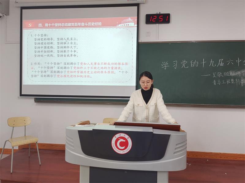 为深入学习党的十九届六中全会精神,坚定青年学生理想信念,91直播 于12月7日下午在立德楼X102开展了以“学习党的十九届六中全会精神”为主题的新思想公开课。活动由学院团副董慧琳主持,学院团委书记石晨迪主讲,大一大二全体班委参与。