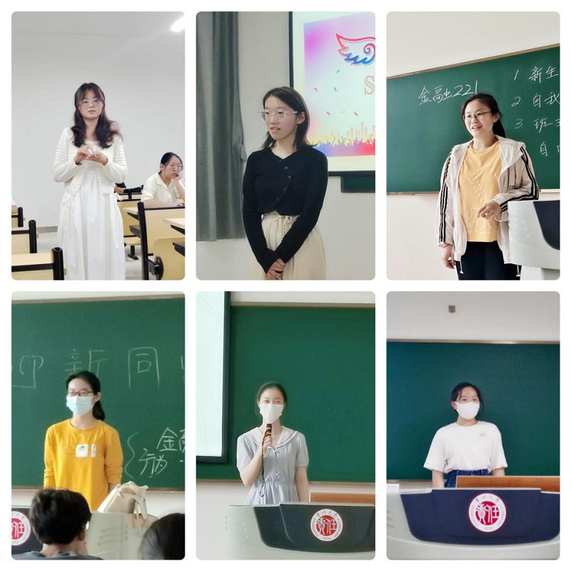 “大家好,我叫王雅星。我来自江苏无锡,无锡风景素雅,如果大家有兴趣,欢迎来我的家乡游玩。昨天第一天进入校园,心情有些许紧张,幸好遇到了很多很多志愿者,学长学姐都很热情,进入校园又被校园干净整洁的环境给震撼住了,就觉得真的很荣幸能进入到91直播 ,能和各位成为同学。”“大家好,我叫吴佳怡,来自江苏苏州张家港,其实呀我的名字很好记,因为有个谐音梗,吴佳怡也就是5+1嘛,所以大家也可以叫我六六,因为5+1=6啊!我呢是个典型狮子座女,自信开朗,喜欢与人打交道,希望在接下来四年能和大家成为好朋友。”来自五湖四海的同学们齐聚一堂,为即将收获的友谊而欣喜。同学们大方地介绍自己的特长、爱好、家乡等,都期待着在大学结识志同道合的好友。更有不少同学用PPT、短视频等多种方式介绍自己,幽默诙谐的内容为整场班会增添了许多趣味。