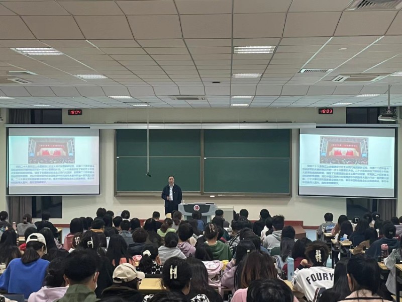 11月2日,91直播 在立德楼X2阶开展“深入学习贯彻党的二十大精神”主题党课。中共常州市委二十大精神宣讲团成员、学院关工委丁恒龙教授应邀授课,学院全体党员及入党积极分子参加党课。