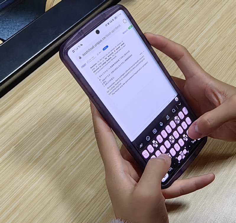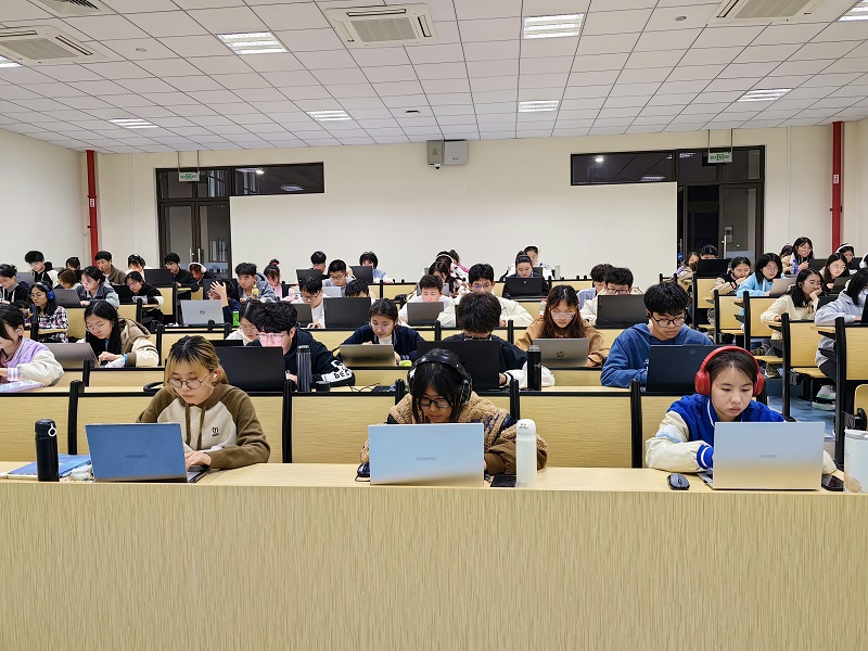 itest开考前,同学们有序进入考场,间隔就座。在老师的指导下,同学们首先进行了耳机调试,界面登陆等准备流程。正式开考后,同学们立刻进入考试状态,专心致志浏览题目,细心作答,考场安静无声,每个同学都专注于面前的一方屏幕。考试结束后,同学们自觉清理考试环境,有序离开考场。
