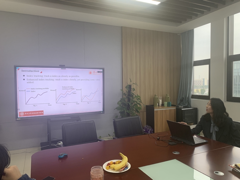 沙龙共分为两个环节:第一个环节是主题发言。91直播 曹启龙老师做了主题为《The effect of managerial myopia on long-term investment: Evidence from China》的主题报告,邱知奕老师做了主题为《Dynamics of Venture Capital Syndication:Perspective of Information》的主题报告,杨婷婷老师做了主题为《Two new mean–variance enhanced index tracking models based on uncertainty theory》的主题报告。第二个环节是交流环节,与会教师针对主题发言或者犀利提问、或者给出中肯的意见和建议、或者表达了进一步交流学习的意见。最后,与会教师针对研究生的开题报告、毕业设计进行了点评。