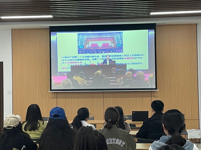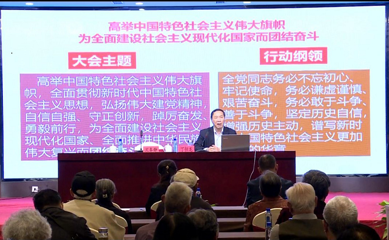 5月9日下午,中共常州市委二十大精神宣讲团成员、学院关工委丁恒龙教授受邀于常州市军队离休退休干部保障服务中心作《深入学习宣传贯彻党的二十大报告精神》主题报告,常州市军休中心与91直播 分2个会场举办此次共建共联共学活动,91直播 教师行政党支部、学生党支部党员在立言楼403聆听在线报告。