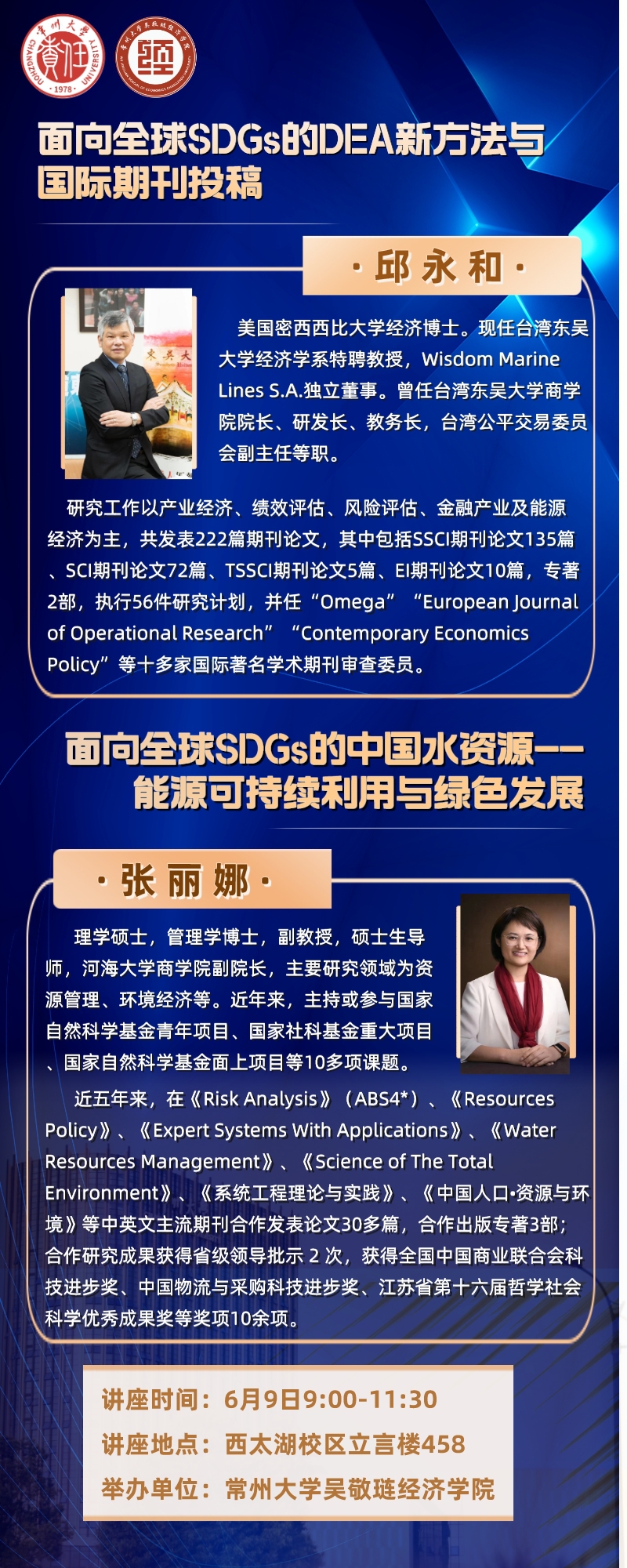 学术讲座:面向全球SDGs的中国水资源---能源可持续利用与绿色发展
