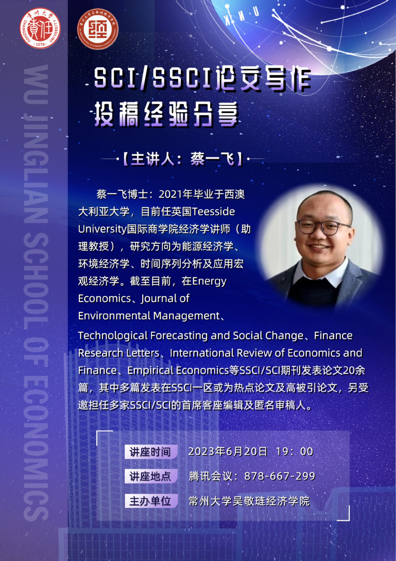学术讲座:SCI/SSCI论文写作投稿经验分享(6月20日)