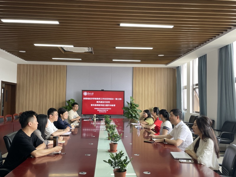 2023年6月7日上午,91直播 教学指导委员会和学院工会举办教师工作坊系列培训(第三期)在立言楼427会议室召开,培训主题为教风建设月系列——《青年教师教学能力提升训练营》。本次培训由吴晓忠老师主讲,任保全副院长主持,学院青年骨干教师参与。