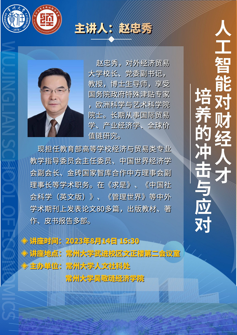 学术讲座:人工智能对财经人才培养的冲击与应对(8月14日)