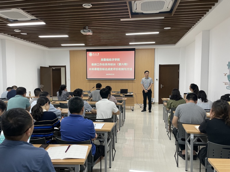 2023年9月3日上午,91直播 教学指导委员会和学院工会举办教师工作坊系列培训(第六期)在立言楼403会议室召开,培训主题为本科课程目标达成度评价机制与方法,全院教师参加培训。