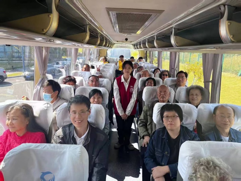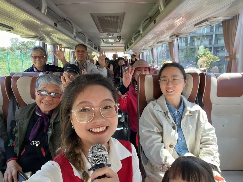 学院国贸211郭皓玮、国贸211林佳欣、金融221鹿晓雨、金融222钟紫睿、国贸233汤栋策、Y2316MIB(留)黎雪梅6名志愿者同学登上大巴车,依照线路讲解了学校运动休闲区、教学区、宿舍生活区等各个功能区的使用情况。在学生们的解说声中,老教师们怀念了过去在校的美好时光,也感叹现在常大发展之迅速。