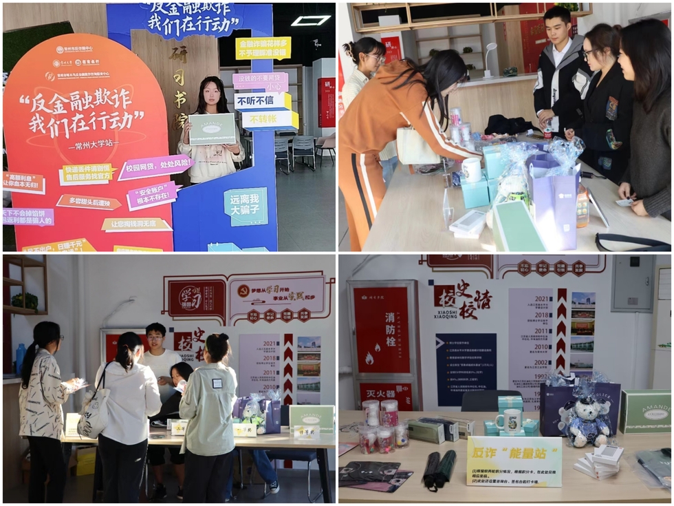 最后,参与者们凭积分卡来到反诈“能量站”,汲取反诈知识,兑换精美礼品。常州市啄木鸟反金融欺诈咨询服务中心学生成员耐心地向同学们普及金融常识、开展宣传教育,用生动的案例和详实的数据让反诈观念入脑入心、走深走实。