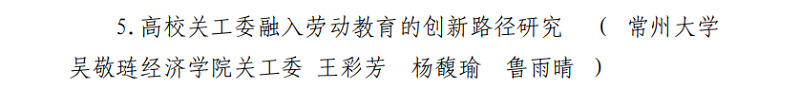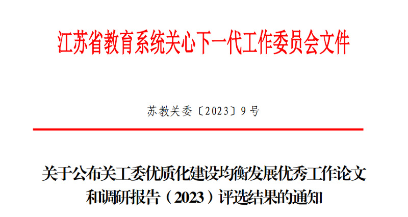 近日,省教育系统关工委印发《关于公布“社会主义核心价值观‘精品教育项目’案例(2023年)”评选结果的通知》、《关于公布关工委优质化建设均衡发展优秀工作论文和调研报告评选结果的通知》,91直播 王彩芳老师、杨馥瑜老师、金工212鲁雨晴报送的《高校关工委融入劳动教育的创新路径研究》获得江苏省关工委优质化建设均衡发展优秀工作论文二等奖;宋佳羚老师报送的《踔厉奋发,走好新时代的长征路》获江苏省关工委“社会主义核心价值观‘精品教育项目’案例(2023年)”三等奖。