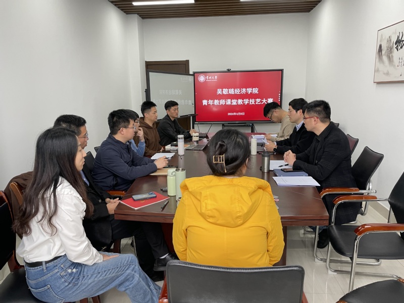 2024年4月8日中午12点,91直播 2024年度青年教师课堂教学技艺大赛在立言楼419举办。91直播 任保全、滕翔宇、吴晓忠担任评委,学院7名青年教师参加此次比赛。