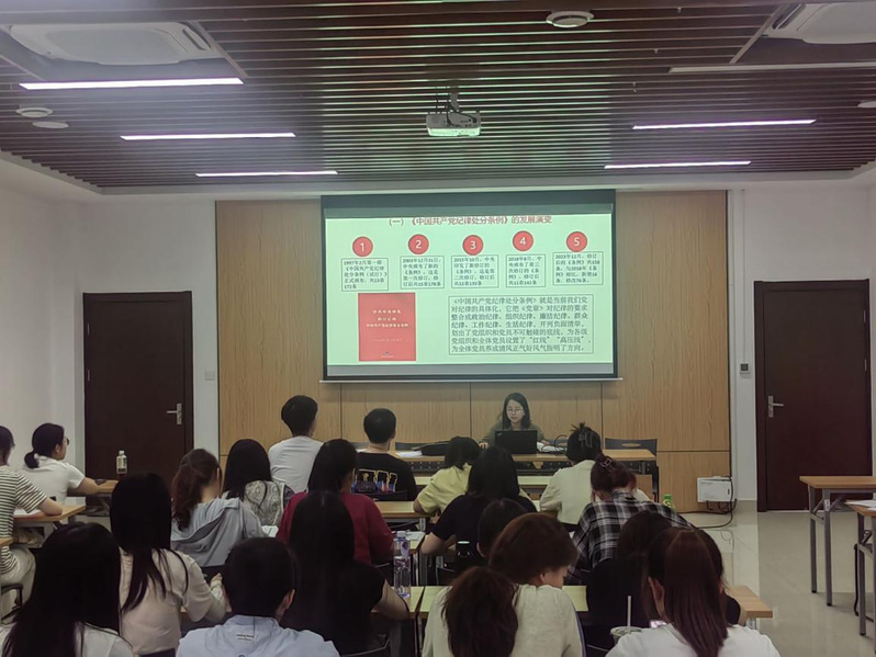 狄静老师以“学纪、知纪、明纪、守纪”为题,结合新修订的《中国共产党纪律处分条例》,从条例的发展历程、明细内容、警示教育等方面进行了深刻剖析与解读,要求支部党员明确《中国共产党纪律处分条例》的重要性、规范性与原则性;突出政治纪律学习,坚持以政治纪律为纲,深入学习每条纪律文本背后的核心要求,确保全体毕业生党员严格遵守党章和各项纪律条例,严明政治规矩,坚定维护党中央权威和集中统一领导,永不触碰“红线”。毕业生党员们集体观看了违规违纪典型案例视频,真切体会到遵守党纪党规的必要性,更加深刻地认识到严守纪律、廉洁自律的重要意义。