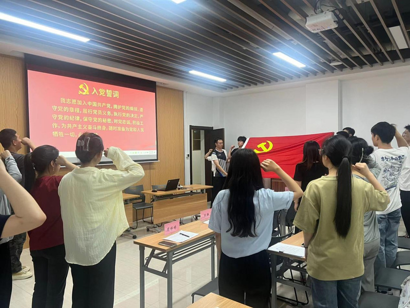 最后,杨馥瑜老师带领全体毕业生党员重温入党誓词。毕业生党员们表示将时刻牢记自己的身份,不断叩问初心、坚守使命,始终做到初心如磐、使命在肩。(文/王纤芸 杨馥瑜 摄/张浩城 审核/姜鸿 编辑/狄静)