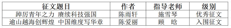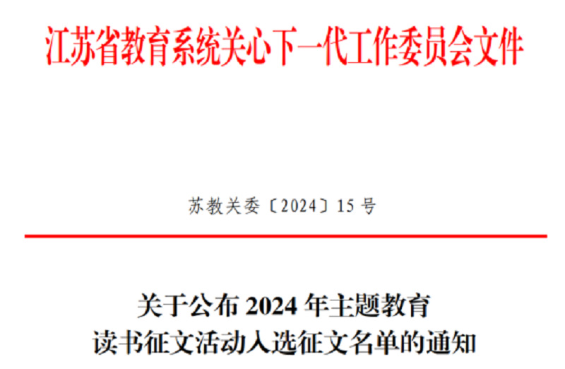 近日,省教育系统关工委公布2024 年主题教育读书征文活动入选征文名单,我院学生征文作品获优秀征文1篇、入围征文1篇。