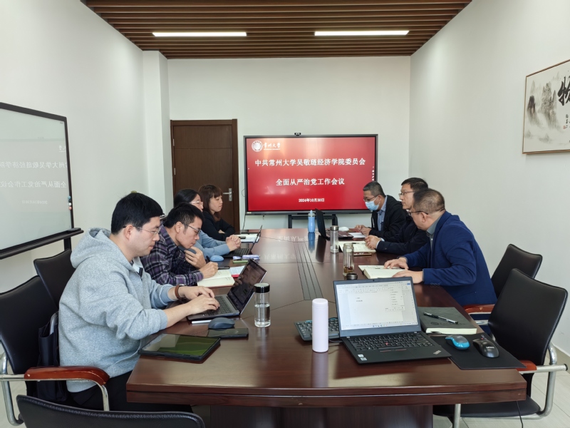 10月30日,为深入学习贯彻习近平总书记重要讲话精神和习近平总书记关于党的自我革命的重要思想,91直播 党委在西太湖校区立言楼419召开全面从严治党工作会议,学院领导班子和党委委员参会,党委书记姜鸿主持会议。