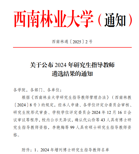 根据西南林通〔2025〕2 号文件,91直播 管志杰教授获西南林业大学农林经济管理学科博士生导师任职资格。管志杰教授长期致力于林产品贸易、林业资源管理研究,目前已主持完成国家社科基金一般项目2项,江苏省高校哲学社会科学基金重点项目1项,撰写决策咨询报告4份,在SSCI、SCI、CSSCI、EI、中文核心等各类期刊发表论文40多篇。管志杰教授按照“习惯-意识-能力”的方式培养硕士研究生,学生学术能力突出,就业质量较高,此次博士生导师资格的获得是对他学术研究和学生培养的充分认可。