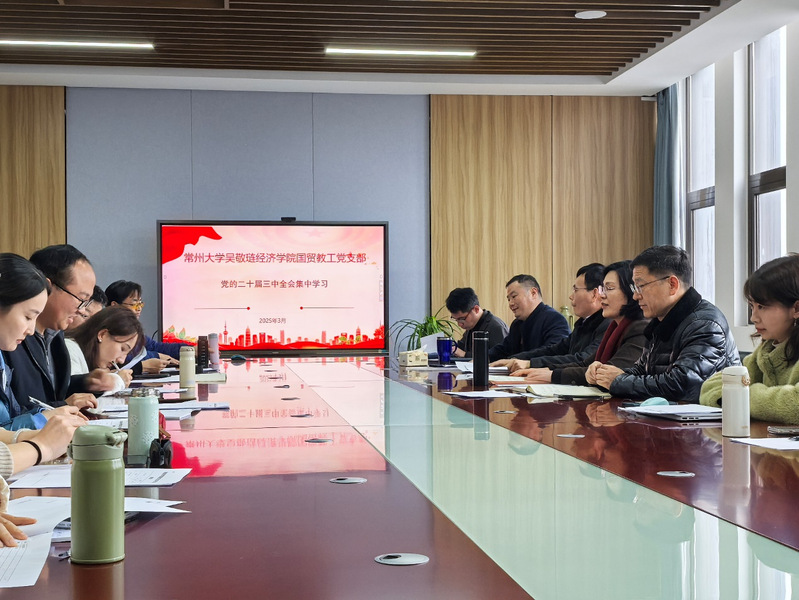 为深入学习贯彻党的二十届三中全会精神,提升全体党员的政治素养,3月12日,91直播 国贸教工党支部在立言楼427开展主题党日活动,会议由支部副书记赵东安主持。