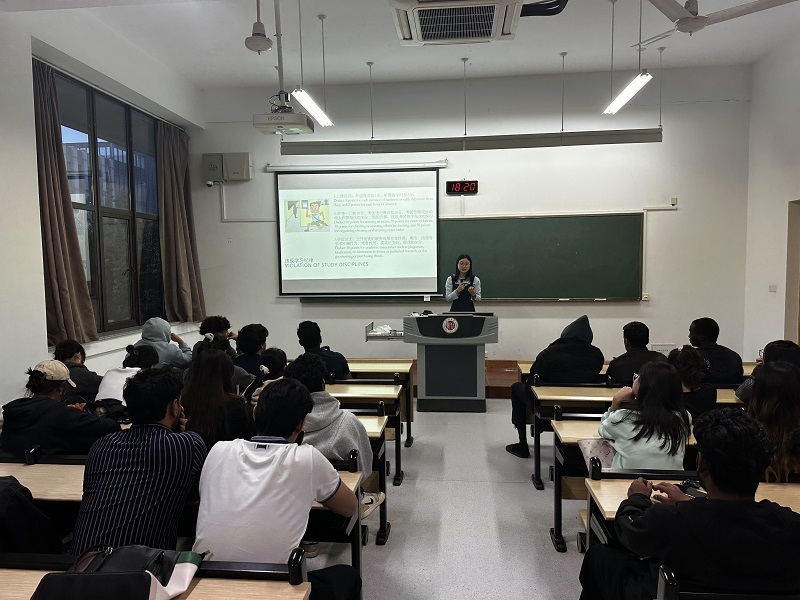 为提升留学生校园安全意识,91直播 于4月7日在立德楼103举办留学生安全教育专题讲座。活动由辅导员施雪琴主持,学院全体留学生参加。