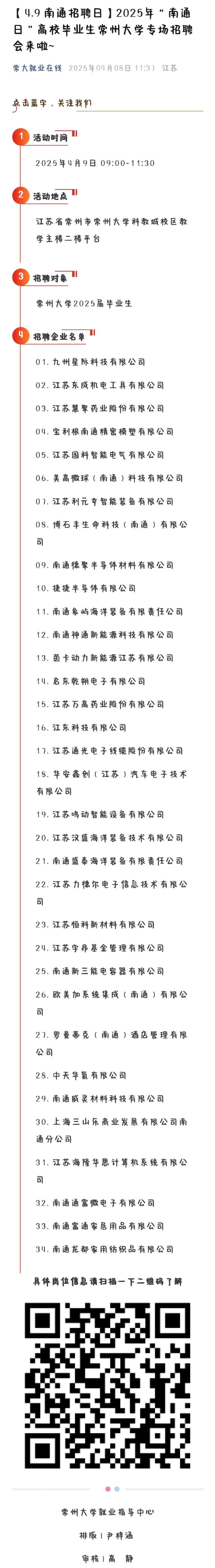 【4.9 南通招聘日】2025年“南通日”高校毕业生91直播 专场招聘会来啦~