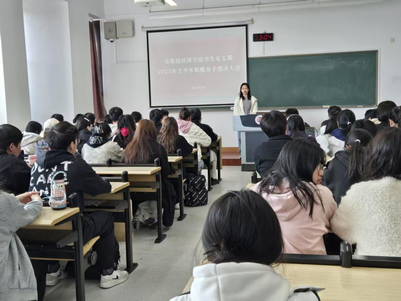 为规范学生党员发展流程,严把思想关、行动关,吴敬琏经济学院学生党支部于4月1日在立德楼305教室召开接收积极分子支部大会,本次会议由学生党支部纪检委员吴欣苗主持,全体党员参会及入党积极分子参会。