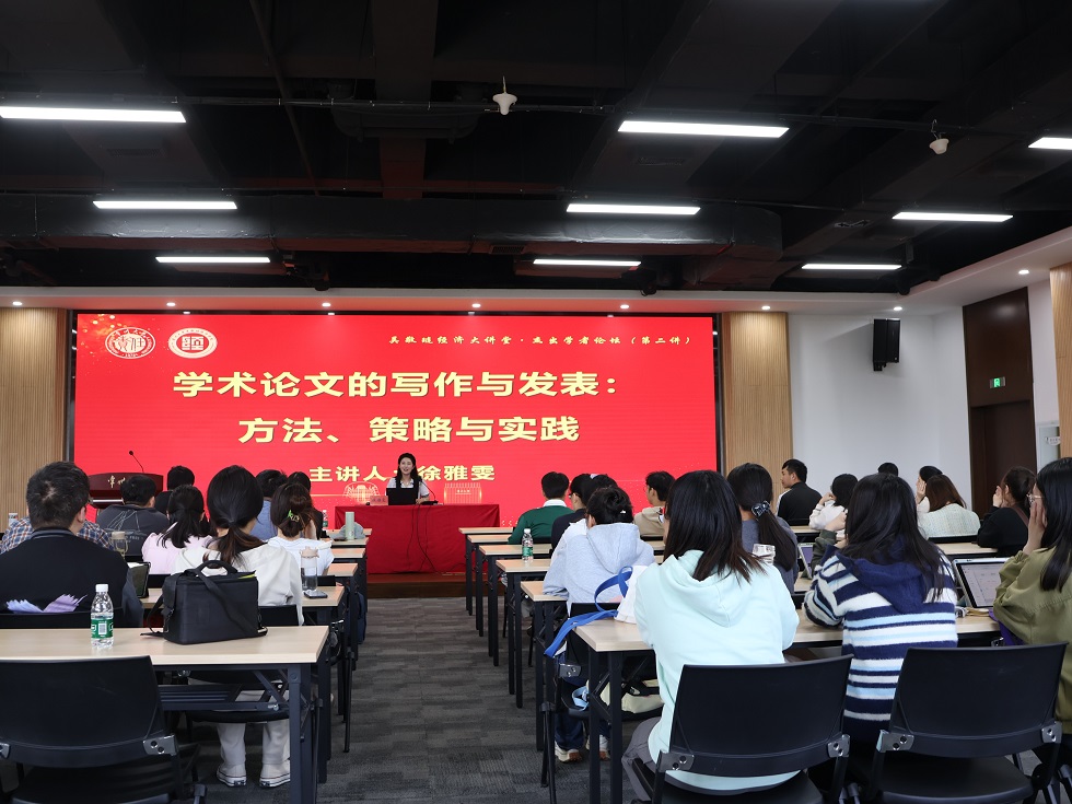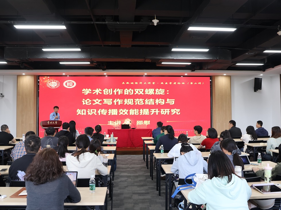 徐雅雯副社长以《学术论文的写作与发表:方法、策略与实践》为主题,从期刊审稿和编辑校对的角度,结合财经研究领域的时代要求,在论文研究的新兴领域和研究方法上进行了指导。邵慰副主编以《学术创作的双螺旋:论文写作规范解构与知识传播效能提升研究》为主题,结合自身的经验,从期刊概况、办刊特色、编审制度、期刊偏好等角度,给出了论文选题以及写作规范的建议。