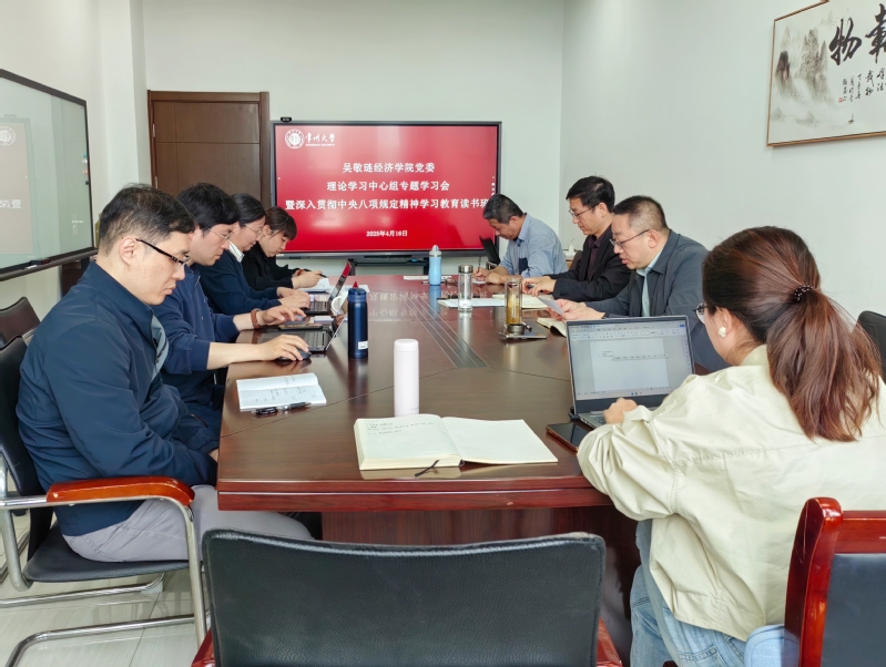 4月16日上午,学院党委在立言楼419会议室召开理论学习中心组学习会暨深入贯彻中央八项规定精神学习教育读书班。会议由党委书记姜鸿主持。
