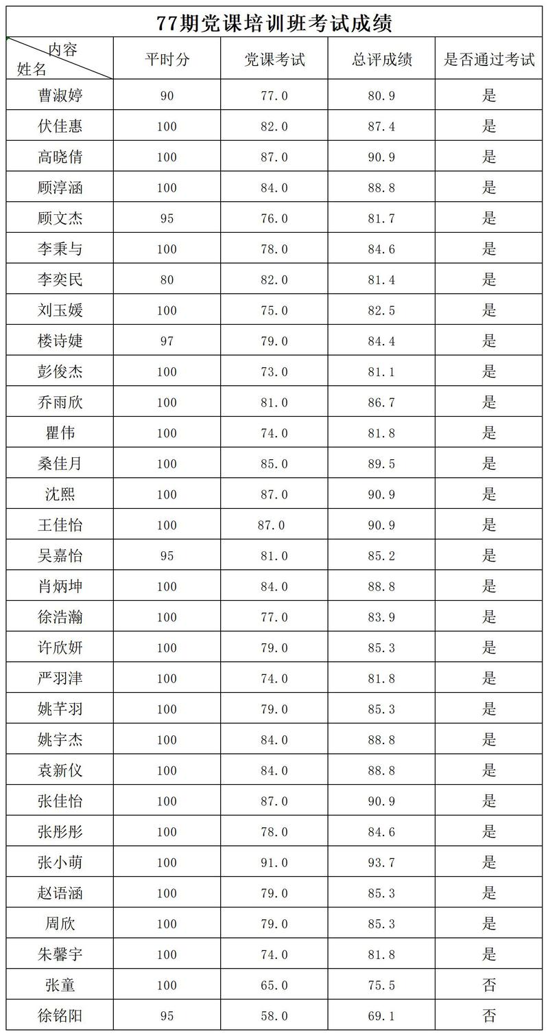 为贯彻落实习近平新时代中国特色社会主义思想,深入学习党章党规知识及党的有关文件内涵,91直播 开展了第77期党章党规培训与考试。现将考核结果公示,名单如下: