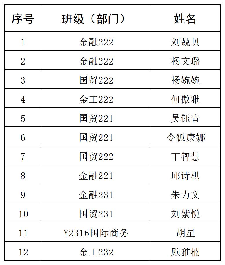根据我校发展学生党员公示制度的有关规定,经学生党支部委员会会议讨论决定并报学院党委备案同意,拟发展以下12名同志为发展对象,公示时间2025年5月9日至2025年5月15日,若有不同意见请于2025年5月15日前以口头或书面形式实名向91直播 学工办反映。联系电话:0519-88519208,地址:立言楼413。