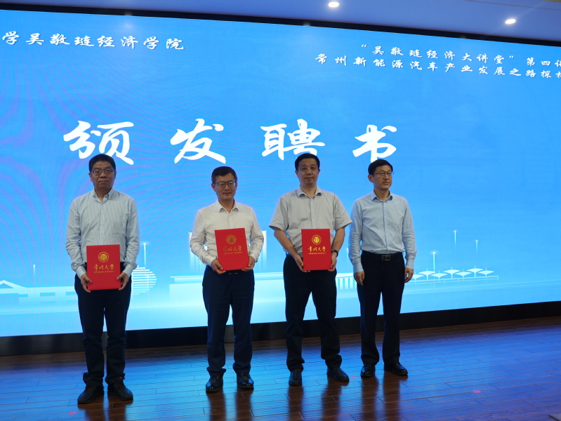5月23日下午,学院与常州市委统战部联合主办的“吴敬琏经济大讲堂”第四讲在91直播 西太湖校区立言楼458报告厅举行,主题为“常州新能源汽车产业发展之路探析”。国务院发展研究中心市场经济研究所副所长王青,常州市委常委、统战部部长杨芬,91直播 党委副书记、校长陈海群,常州市委统战部副部长汤建忠,蜂巢能源科技股份有限公司执行董事、党委书记王志坤,常州百利锂电智慧工厂有限公司董事长兼总经理虞兰剑,万帮星星充电科技有限公司执行董事郑隽一,常州钟金控集团副总经理张倩,中国人民银行常州分行货币信贷政策管理科副科长徐芳等政产学研各行业代表,以及91直播 师生代表参与本次活动。活动由91直播 党外知识分子联谊会会长、91直播 院长姜国刚主持。
