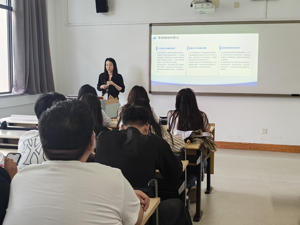 会议开始,李佳蔚老师以近期高校考试中出现的典型违纪案例为引,引导同学们深入思考考试作弊背后的诱因及其带来的严重后果。她强调,考试不仅是检验知识水平的手段,更是品格修养的体现。诚信考试,既是对个人负责,也是对他人公平的尊重。