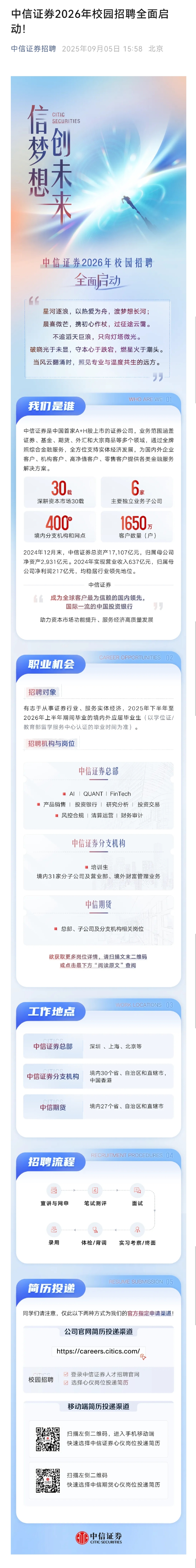 中信证券2026年校园招聘全面启动