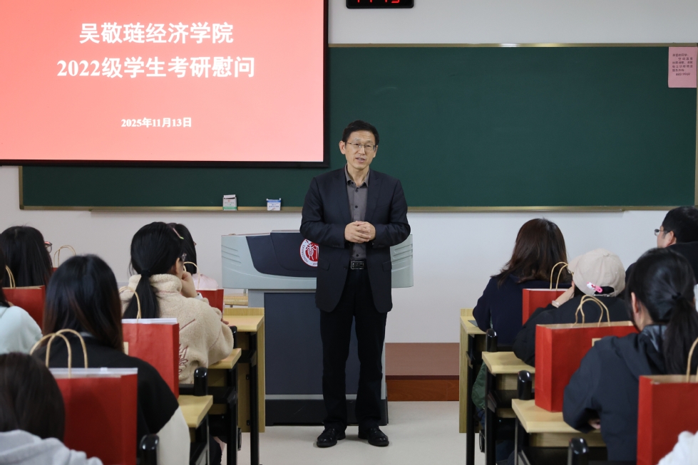 为切实关注考研学子的备考状况,传递学院的关怀与支持,11月13日下午,91直播 于立功楼125举办了2022级学生考研慰问活动。学院党委书记姜鸿、党委副书记许丹丹、副院长任保全、国贸系主任管志杰、金融系主任程安出席活动。本次活动由学院2022级辅导员徐茜主持。