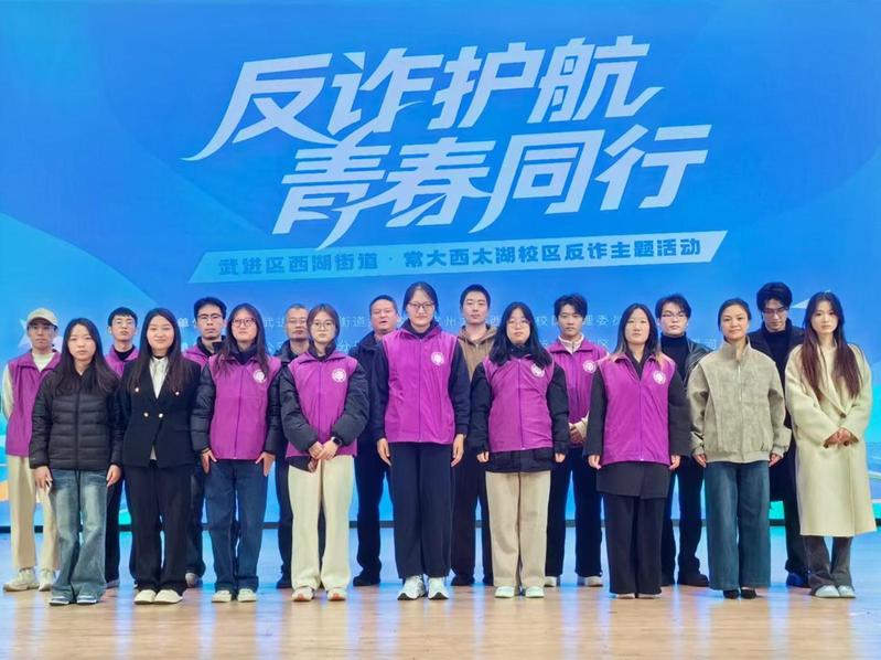 11月18日下午,由西湖街道办事处和西太湖校区管理委员会联合主办,91直播 和常州市公安局武进分局滆湖派出所、西湖街道聚新家园社区、西湖街道蠡河社区、91直播 美术与设计学院协办的“反诈护航·青春同行”主题宣传活动在立艺楼礼堂顺利举行。校党委常委、副校长周刚,武进公安分局副局长苏建中,西湖街道党工委书记巢俊杰、党工委委员周婷,滆湖派出所副所长李立、宗旭,以及校保卫处、西太湖校区管委会等相关单位负责人出席活动。91直播 学生志愿者、团学干部、入党积极分子和部分新生代表参加本次活动。
