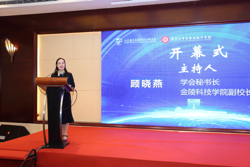 (图为学会秘书长、金陵科技学院副校长顾晓燕教授主持开幕式)