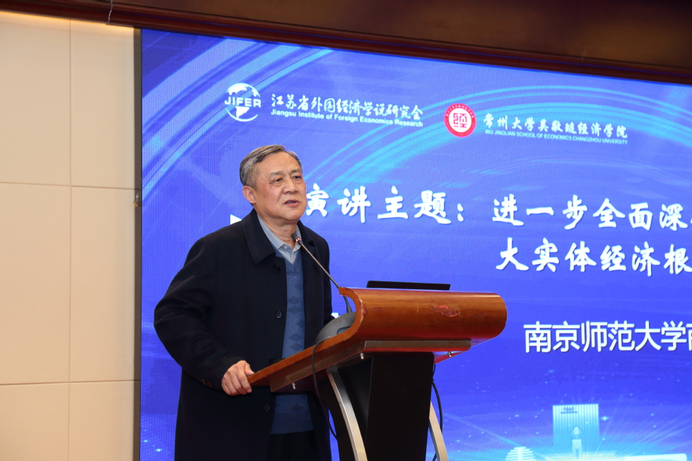 (图为南京师范大学商学院蒋伏心教授作主旨演讲)