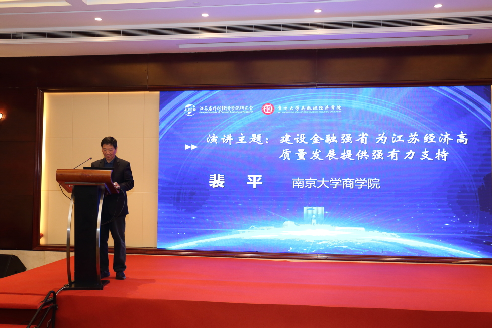 (图为南京大学商学院裴平教授作主旨演讲)