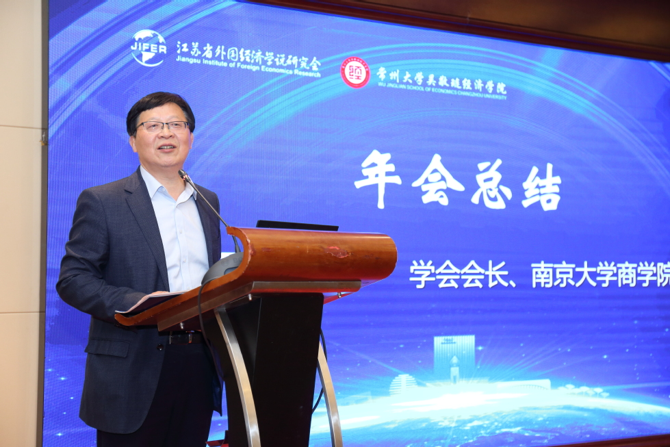 (图为学会会长、南京大学商学院于津平教授作年会总结)