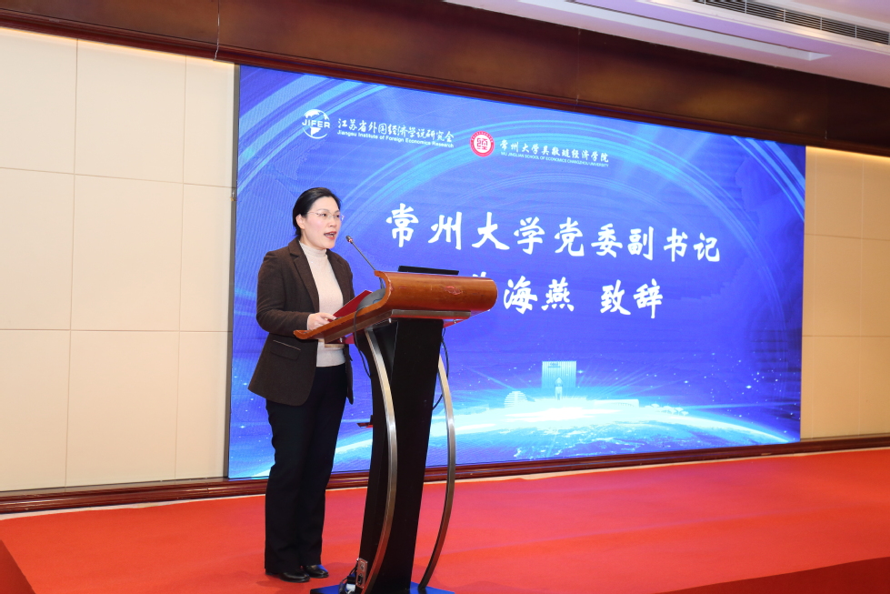 开幕式由学会秘书长、金陵科技学院副校长顾晓燕教授主持。江苏省哲学社会科学界联合会党组书记、副主席张新科教授,91直播 党委副书记黄海燕教授,学会会长、南京大学商学院于津平教授分别作开幕式致辞。黄海燕副书记在欢迎辞中介绍了91直播 的发展历程与办学特色,她提到,学院自开设国际经济与贸易专业以来,紧盯学术前沿,整合优势资源推进学科建设,深度服务地方能源产业与绿色经贸高质量发展,始终致力于培养兼具理想信念、爱国情怀、科学精神、协作品质与国际视野的高素质创新型人才。