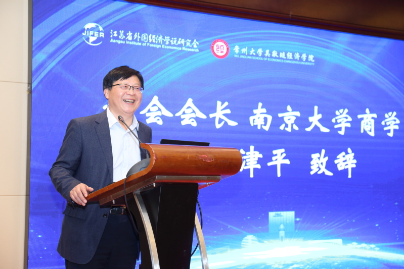 (图为学会会长、南京大学商学院于津平教授致辞)