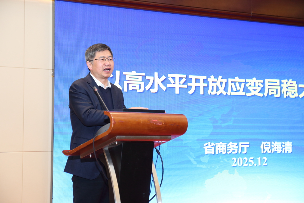 (图为江苏省商务厅倪海清副厅长作主旨演讲)