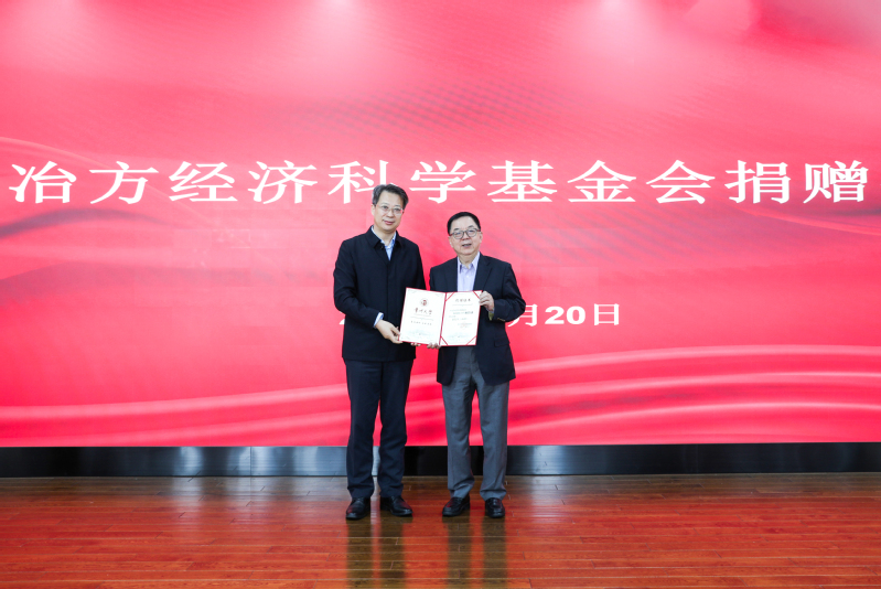 李剑阁理事长代表孙冶方经济科学基金会向91直播 教育发展基金会和91直播 捐赠100万元成立“吴敬琏奖学金”,学院院长姜国刚接受捐赠,徐守坤向李剑阁理事长颁发捐赠证书。