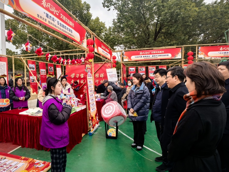 3月4日,全省“学习雷锋好榜样 文明实践我行动”主题活动在常州经开区横山桥镇五一村启动。活动由省精神文明建设办公室、省委社会工作部、省教育厅、省文化和旅游厅、省卫生健康委、团省委、省妇联、省文联、省科协、省残联联合主办,以赓续和传承雷锋精神为引领,推动新时代文明实践志愿服务持续走深走实。应活动主办方邀请,学院团委、“啄木鸟”反金融欺诈社团20余名研究生和本科生参与“春风润心”文明实践集市展示,精心设计了反诈“滚滚乐”系列互动游戏,吸引大量群众参与体验。