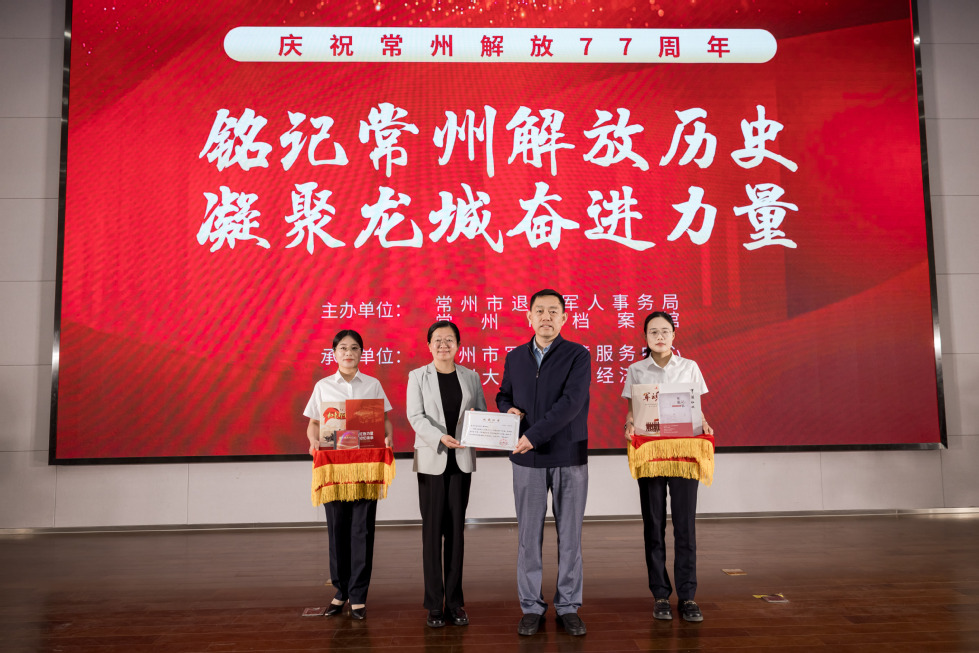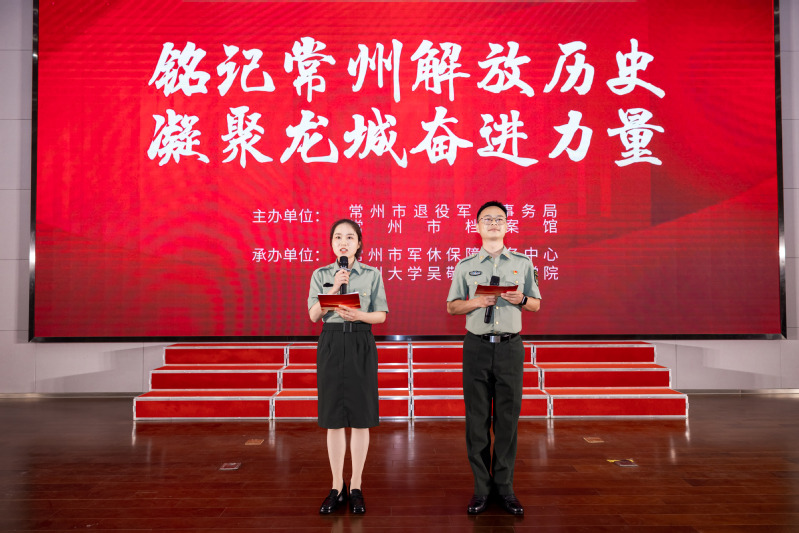 4月20日下午,91直播 师生赴常州市档案馆新馆参加“铭记常州解放历史 凝聚龙城奋进力量”——“庆祝常州解放77周年”红色宣讲主题活动。本次活动由常州市退役军人事务局、常州市档案馆主办,我院与常州市军休保障服务中心共同承办。常州市军休保障服务中心军休干部张克义,军休干部黄家伶,常州市退役军人事务局党组成员、副局长倪宁,常州市档案馆副馆长刘承旺,常州市军休保障服务中心党委书记、主任沈春静,副书记、副主任金燕,副主任束茜,纪委副书记张悦,我院党委书记姜鸿,党委副书记许丹丹等出席活动,91直播 团学干部、入党积极分子和大一新生代表参加本次活动。
